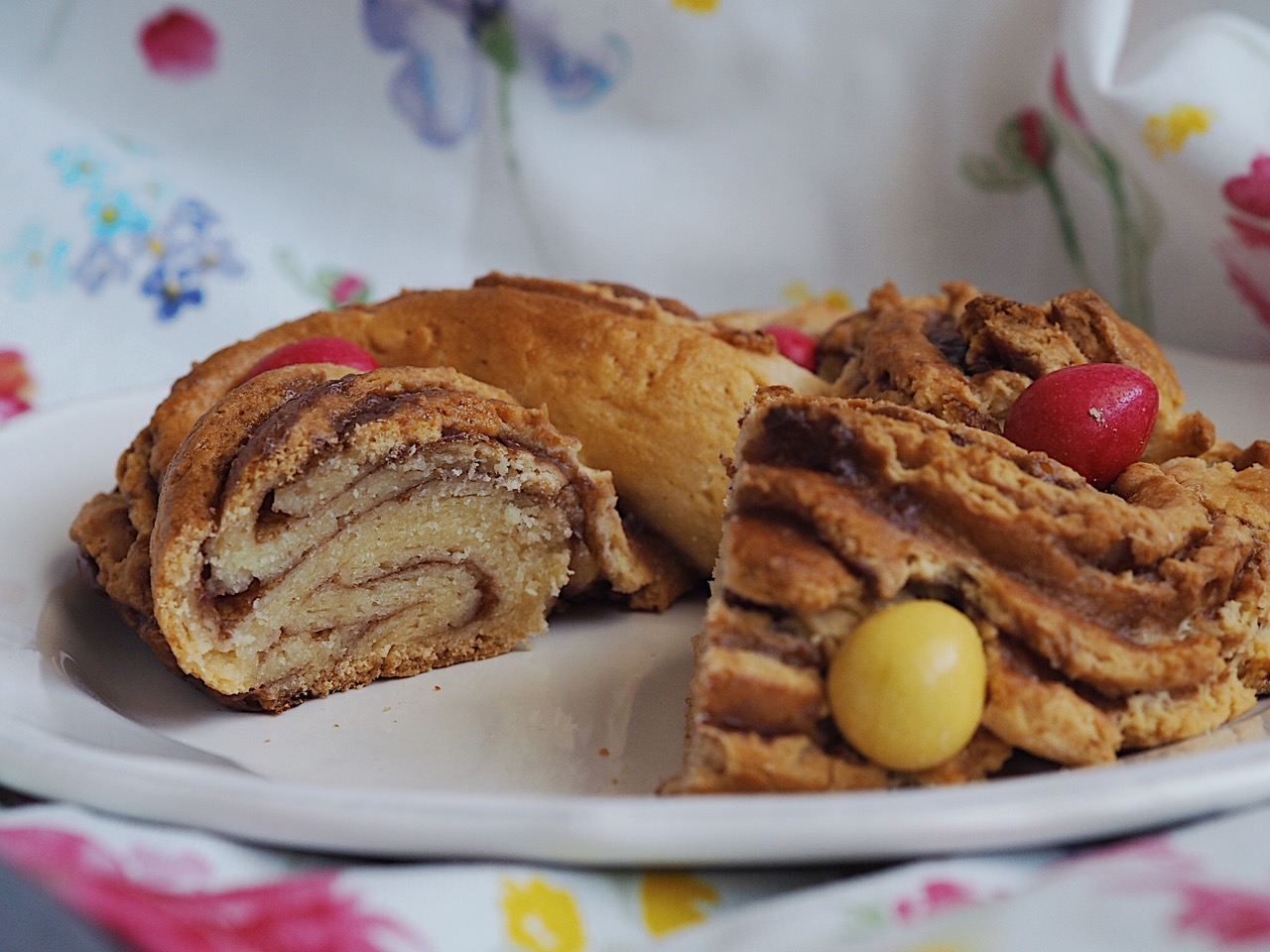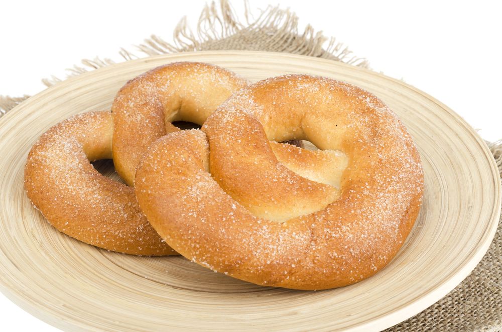 • Delicious sweet pastries homemade pretzel with sugar. Studio Photo