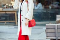 Červený kabát může být nesmírně elegantní. Co říkáte?
