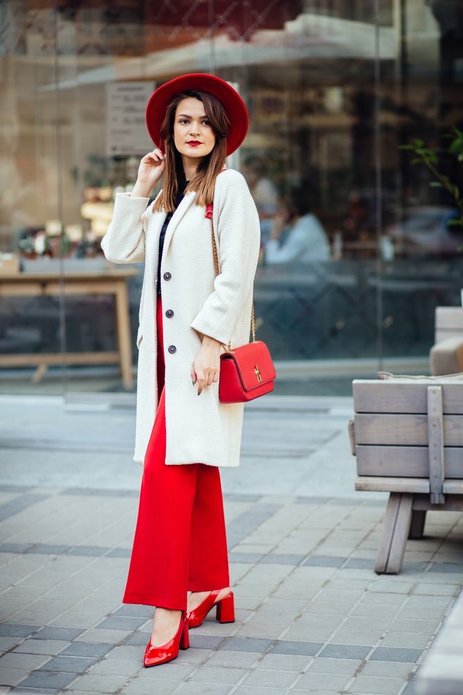 Nechte červenou vyniknout a kombinujte ji s kontrastními barvami. Nezapomeňte také na klobouk!