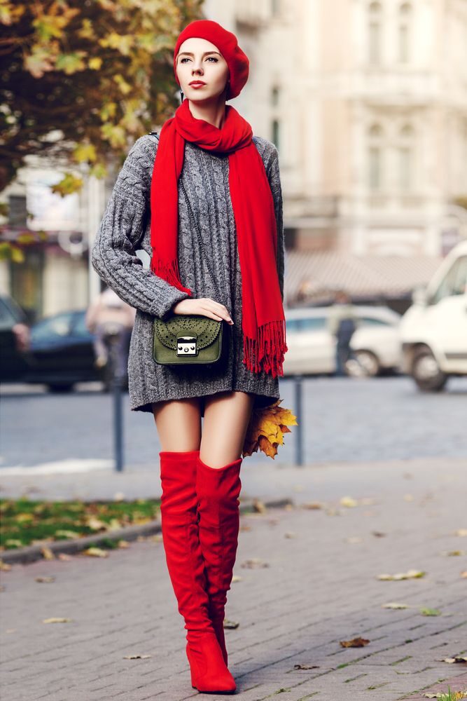 Jen je třeba dát si pozor na jejich rozmístění. Taková červená šála a červená čepice mohou působit přehnaně a leckdo si řekne, že jste si s tvořením outfitu nevěděla rady. Stejně tak červený pásek a červená kabelka. Proto je dobré rozmístit červené doplňky celoplošně a s určitým odstupem. Velmi krásně bude na každé ženě vypadat kombinace červené šály a červených kotníkových bot, nebo červené kabelky a červené čepice.