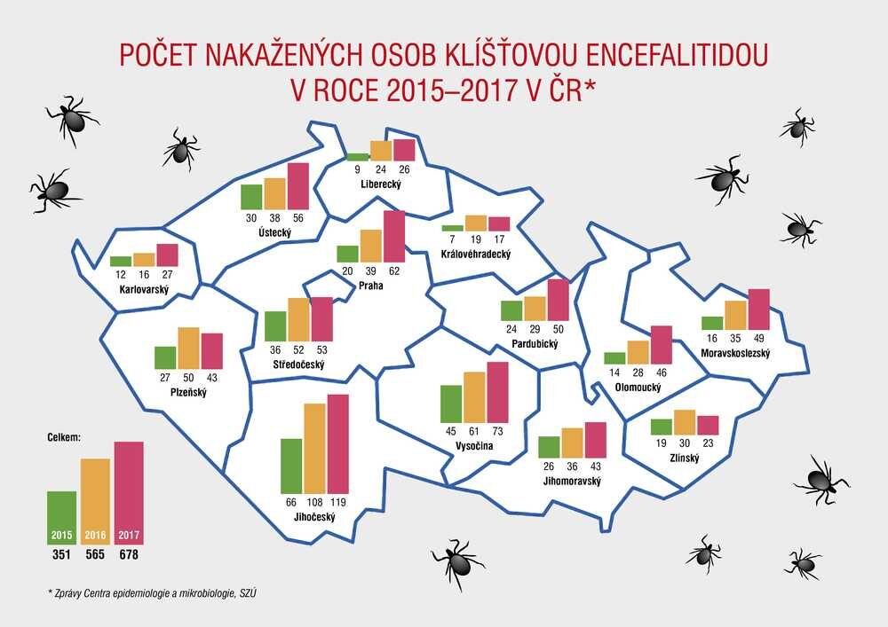 V roce 2017 bylo v České republice hlášeno 687 onemocnění klíšťovou encefalitidou, tj. o 122 onemocnění více, než tomu bylo v roce 2016. Statistické údaje ukazují, že vzrůstající trend je již od roku 2015. Ke zvyšujícímu se počtu nemocných tímto vážným infekčním onemocněním může přispívat i nízká proočkovanost populace České republiky.