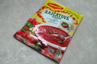Polévky z pytlíku většinou nejsou mým favoritem. Tahle rajčatová je standard. Jeden pytlík je vyrobený z 300 gramů rajčat a vytvoříte z něj půl litru polévky. Chutí není moc vodová, a jak slibuje obal, je spíše krémová. Bylinek (bazalka a oregano) v ní mohlo být více. Stačí ji ale akorát vysypat do horké vody, takže minimálně jednoduchost je velké plus.