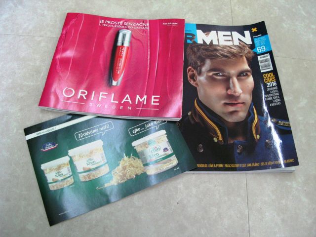 Kromě zmíněných výrobků byl v krabici i časopis For Men, celkem fajn počtení i pro mě – třeba rozhovory nebo tipy na restaurace. Dál byl v boxu i leták ke křenům Efko a katalog Oriflame.