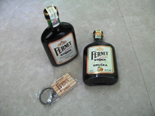 V boxu byly dvě placatky, jeden klasický Fernet a jeden hruškový.