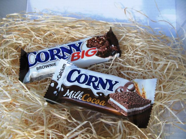Od značky Corny byly v boxu zařazeny dvě tyčinky. Jedna je klasického tvaru, ovšem s limitovanou příchutí brownies. Někteří zákazníci si na Facebooku ztěžovali, že je tyčinka příliš sladká, ale mně to tak nepřišlo. Akorát chutná dost podobně jako obyčejná čokoládová Corny (jenže z čeho jsou taky vyrobeny brownies, že?). Tyčinka pak ve výsledku poměrně zasytila.
