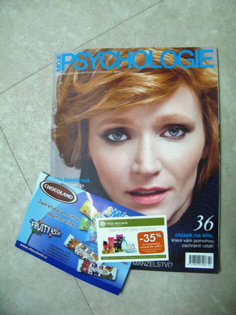Kromě toho byl do krabice zařazen i časopis Psychologie, leták k firmě Chocoland a sleva do Yves Rocher.