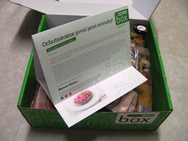 Najdete tu zdravější výrobky v podobě předvařené řepy či celozrnných těstovin, ale i sladkosti ke kávě nebo krásnou bonboniéru s perličkami. To vše zabalené do zelené krabice vystlané bublinkovou folií, aby se nic nerozbilo.