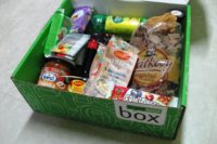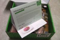 Najdete tu zdravější výrobky v podobě předvařené řepy či celozrnných těstovin, ale i sladkosti ke kávě nebo krásnou bonboniéru s perličkami. To vše zabalené do zelené krabice vystlané bublinkovou folií, aby se nic nerozbilo.