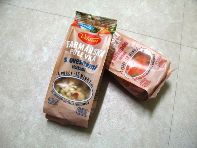 Polévky z pytlíku většinou moc nemusím, ale tyhle dvě překvapily. Do boxu byly přibaleny dvě Farmářské polévky, jedna s červenou čočkou a druhá s ovesnými vločkami, do které se kromě vody musí přidat i mléko. Obě chutnaly dobře, vločková možná ještě více.