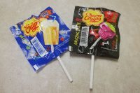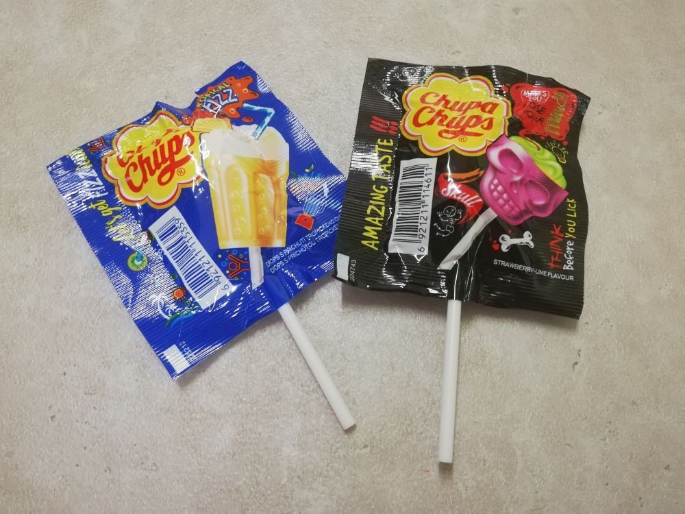 Na první pohled klasická lízátka. Ve skutečnosti ale jedno vypadá jako lebka a druhé jako letní drink (tedy, tak to asi má být, každopádně má spíš tvar sklenice piva). Obě vypadají skvěle a chutnají neobvykle. Ať už jde o jahodu s limetkou nebo v druhém případě tropickou kombinaci.
