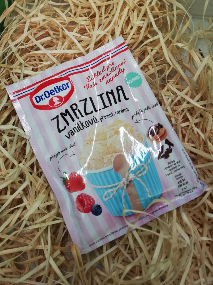 Kdysi jsem se pokusila vyrobit jahodovou smetanovou zmrzlinu – a dopadlo to špatně. Proto mi vůbec nevadí tenhle pomocník v sáčku. Stačí jeho obsah smíchat s mlékem, našlehat a pak dát obsah v krabičce do mrazáku.