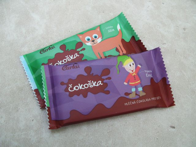 Někdo dostal chipsy a mentosky, další třeba omáčku na vaření. Já uvnitř našla dvě roztomilé Čokošky, které mají obaly nakreslené přímo podle návrhů dětí.