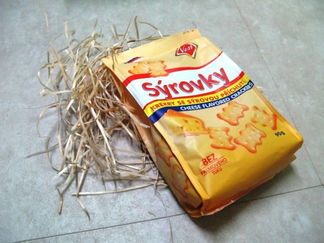 Druhý slaný pytlík v říjnovém Brandnooz Boxu tvoří sýrové krekry od Vestu. Jsou celkem podobné konkurenci (Tuc) – samy o sobě jsou krekry nasládlé, slanou chuť jim přidává až sýrový poprašek na povrchu.