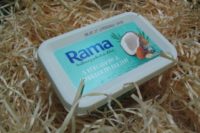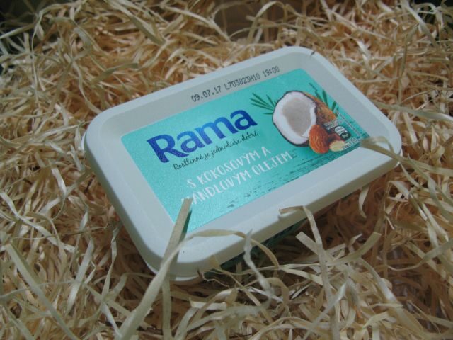 Obal má nová Rama opravdu krásný a voní jako kokos, zato chutí je trochu zvláštní. Nemůžu říct jako jiní odběratelé Brandnooz Boxu, že by chutnala po kokosu (což je asi dobře – pokud by tomu tak bylo, pravděpodobně by šlo o zvýrazňovače chuti). Přijde mi ale celkově umělá. Když si jí dáte na chléb jen trochu a navrch přidáte výraznou šunku nebo sýr, dá se to. Ale sama na pečivu opravdu ne.