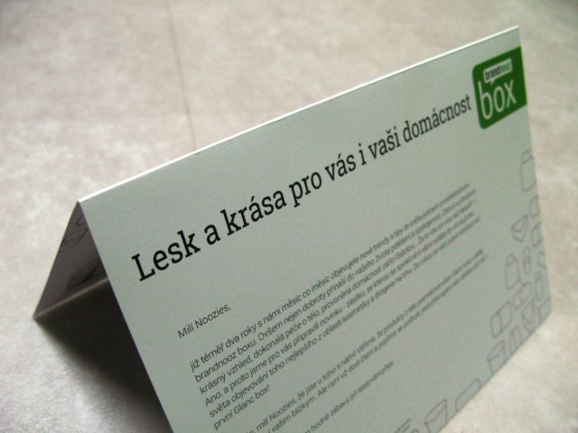 Není to ještě tak dávno, co skončila jiná, čistě kosmetická krabička s překvapením Ladybox. Zkusit to znovu s podobným výrobkem je tak dost odvážné, ale na druhou stranu – tentokrát najdete uvnitř nejen šminky, ale i čisticí prostředky nebo třeba aviváž. A zatím to vypadá, že Glanc Box nebude vycházet každý měsíc.