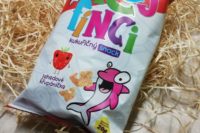 Možná jste už na tyhle kukuřičné křupky viděli reklamu v televizi. Jde o výrobek určený čistě pro děti, křupky mají tvar delfínů a barevný obal. Prodávají se s různými příchutěmi, já měla štěstí na jahodové. Jinak existují i borůvkové, mangové, slané nebo případně zcela bez soli pro ty nejmenší.