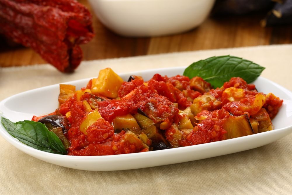 Cibuli nakrájejte nadrobno a pozvolna ji restujte na olivovém oleji. Po chvilce přidejte nakrájenou papriku a nakonec také nakrájená rajčata a rajčatový protlak. Dochuťte solí, pepřem, římským kmínem, špetkou chilli a prolisovaným česnekem. Zhruba po dobu 10 minut směs duste pod pokličkou, nakonec poklici sejměte a vařte na mírném ohni ještě asi 20–30 minut.