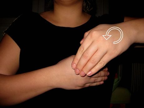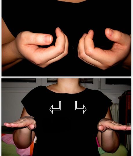 ANO – dlaň je malíčkem kolmo dolů, pohyb vychází ze zápěstí